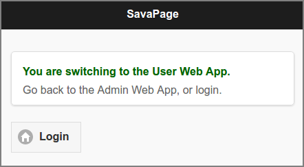 In both situations, either go back to the active Web App session or press to login to the intended Web App type. This will invalidate any other SavaPage session in the same browser instance.